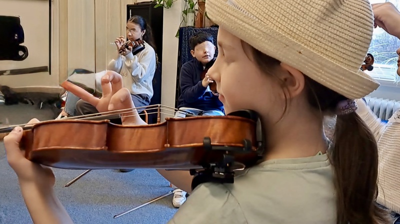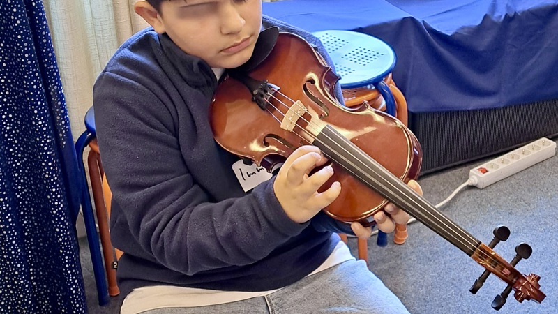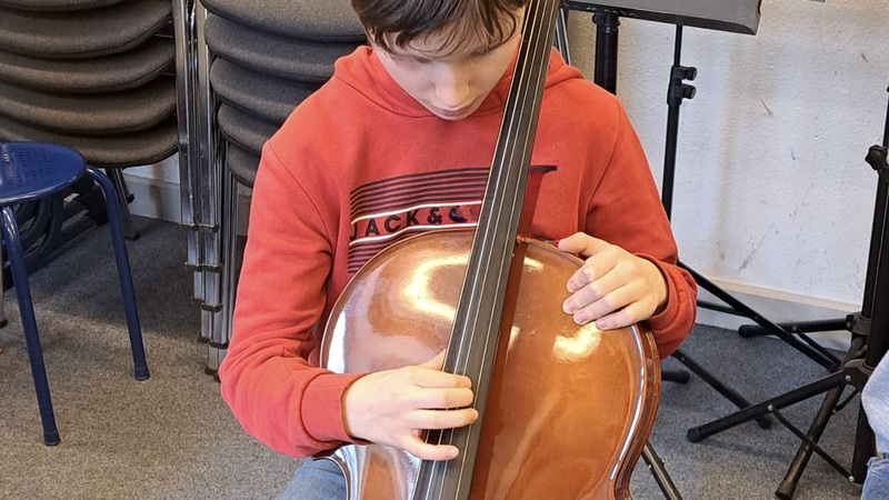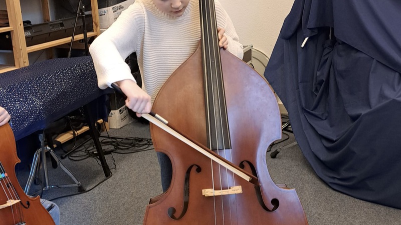 Bei den Streichinstrumenten gelang es uns schon besser :). Wir übten alle fleißig Geige, Bratsche, Violoncello und Kontrabass. Der dicke Kontrabass wurde mit viel Begeisterung gespielt. Aber auch die zarte Geige, oder das melancholische Cello oder die liebliche Bratsche ...ach, einfach ALLE hatten Freude am gemeinsamen Musizieren. Unser „kleines Konzert“ hörte sich schon fast so an, wie wenn sich echte Orchestermusiker in einem Orchestergraben im Theater einspielen. Es war toll!